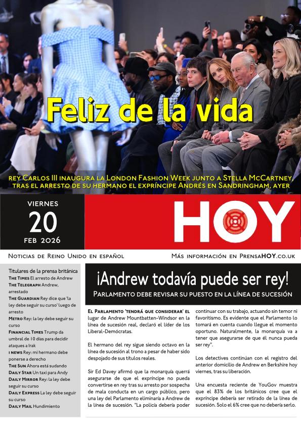 Rey inaugura la London Fashion Week junto a Stella McCartney, tras el arresto de su hermano el expríncipe Andrés en Sandringham, ayer