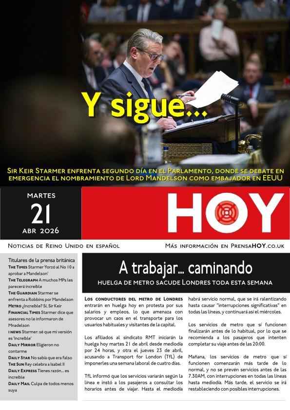 Esta tarde Starmer declarará en la Cámara de los Comunes antes de enfrentar las preguntas de los parlamentarios.