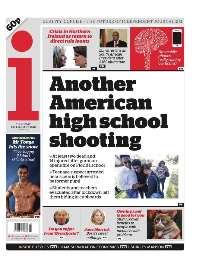 i – JUEVES 15/02/2018 – Un tiroteo más en Estados Unidos: al menos dos muertos y 14 heridos luego de que un hombre armado abriera fuego en el instituto escolar Stoneman Douglas en Parkland (Florida). Se cree que el adolescente sospechoso arrestado cerca de la escena del crimen es un antiguo alumno, mientras evacúan a alumnos y profesores luego que el incidente les hiciera esconderse en armarios.