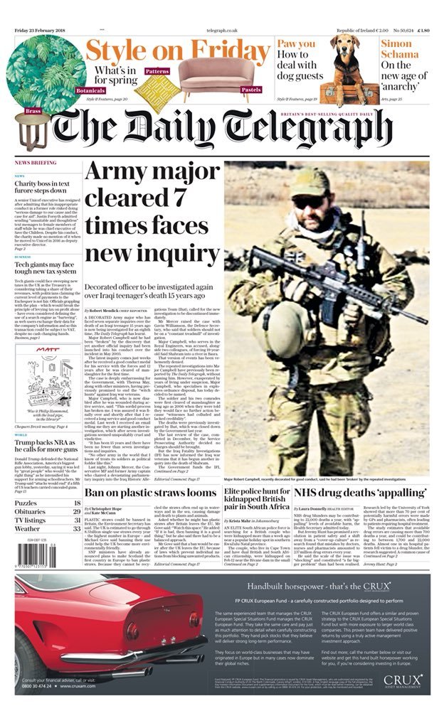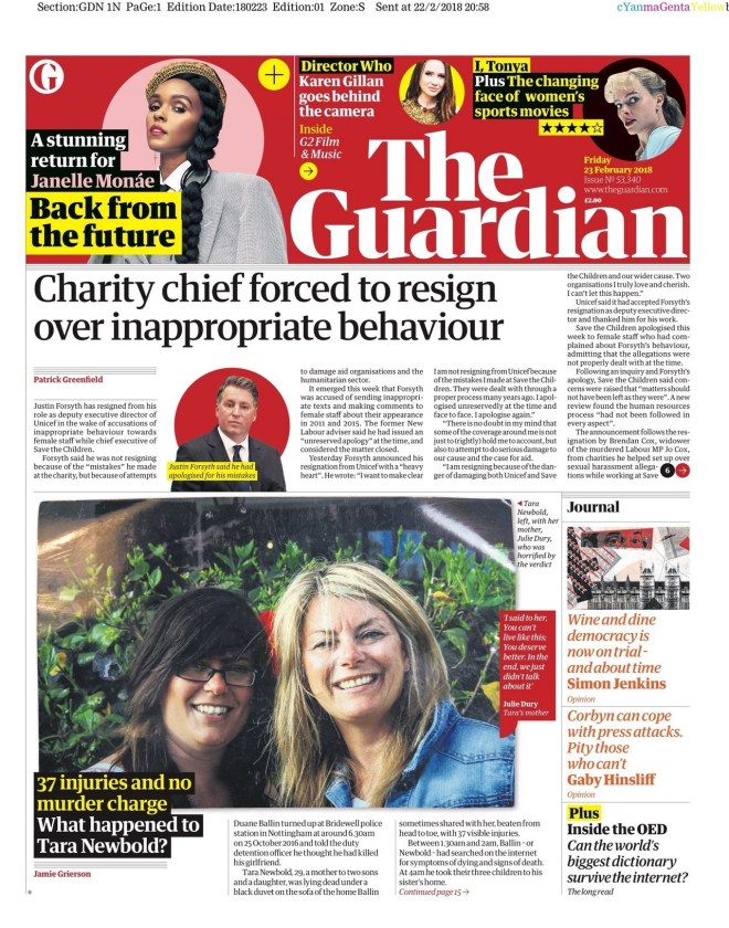 EXPRESS SPORT – VIERNES 23/02/2018 – Cabeza de turco: Paul Pogba cree que Jose Mourinho le culpa de los pobres resultados que el Manchester United ha obtenido en los últimos partidos; el mediocampista francés siente que solo se le critica a él en los entrenos, y quedó consternado cuando Mourinho volvió a salirse de lo que él mismo había anunciado y no le alineó en el once inicial ante el Sevilla – Arsenal se lleva un susto mayúsculo con el Ostersund sueco, y por los pelos no ha perdido la clasificación a octavos de final de la copa UEFA – Eddie Jones, técnico de la selección inglesa de rugby, no está encantado con el juego preciosista de la selección escocesa que dirige Gregor Townsend, y les ha descrito como estrellas del rugby europeo antes del torneo, pero para el encuentro en Murrayfield de mañana sábado les ha dedicado “duras verdades” y ha dicho que “el rugby [de la copa Seis Naciones] es para ganar, no para entretener" – “Hablo con mis hijos por Skype… y ya son fans del Watford” – Javi Gracia, entrenador del equipo – Sol Campbell dice que “es una de las grandes mentes del fútbol” luego de fracasar en su intento de dirigir al Oxford de la League One (segunda división)