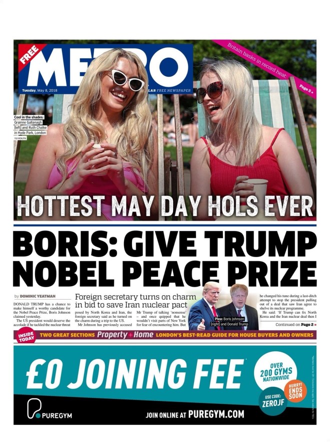 El presidente norteamericano merecería el reconocimiento si terminara con la amenaza nuclear de Corea del Norte e Irán, dijo el ministro de exteriores británico – tirando de encanto – durante su visita a los Estados Unidos.