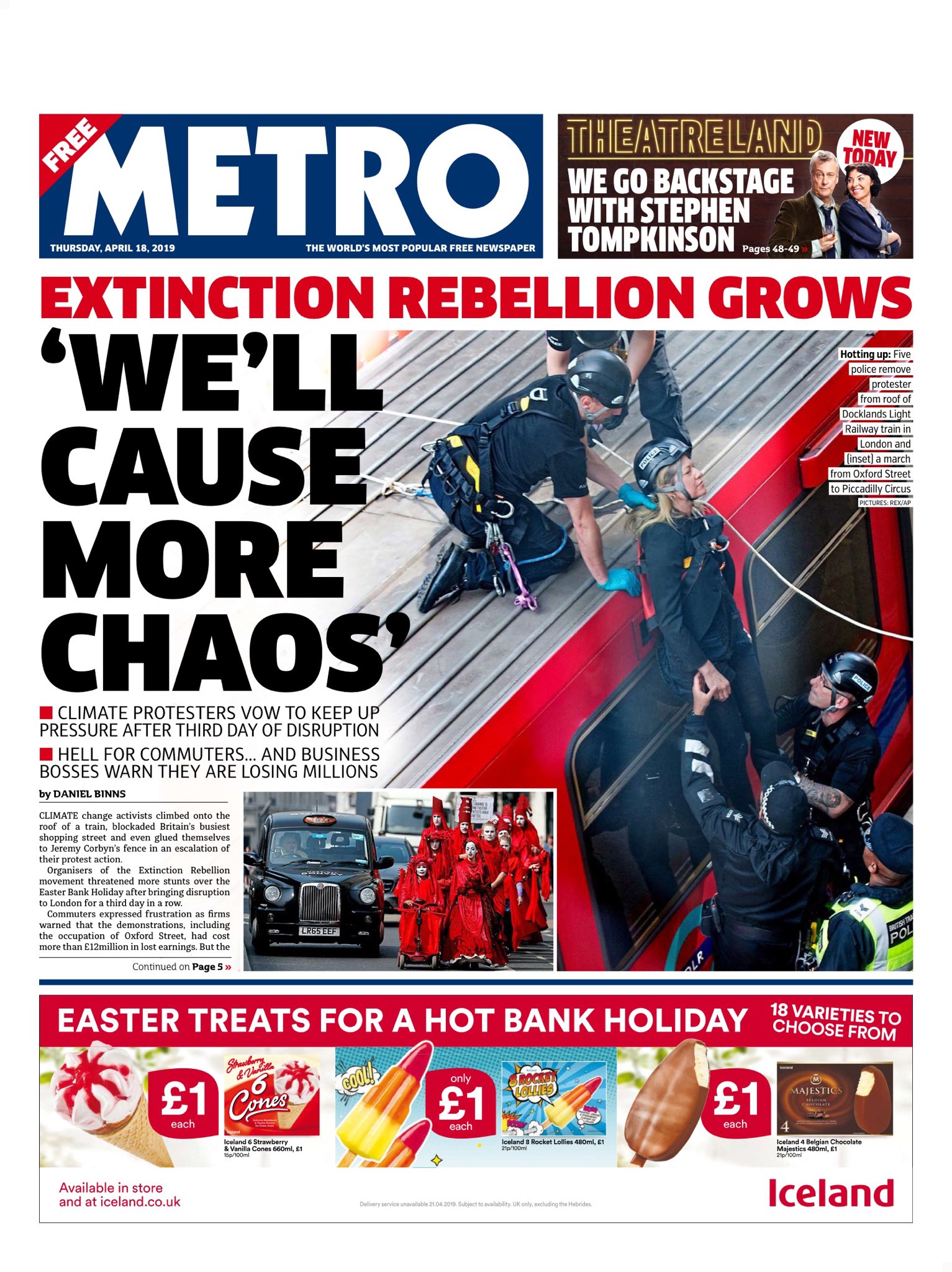 Los organizadores del movimiento Extinction Rebellion amenazaron con más intervenciones durante las vacaciones de Semana Santa, después de interrumpir actividades en Londres por tercer día consecutivo.