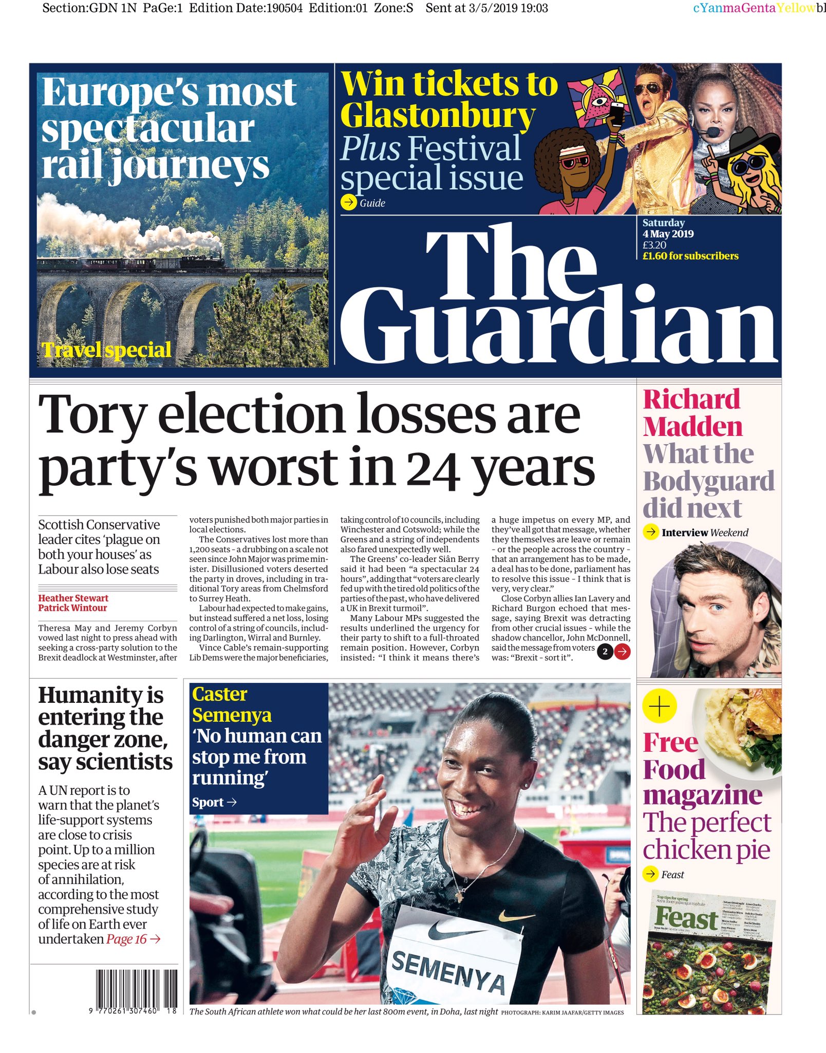 Prensa Británica de Mañana, HOY — THE GUARDIAN — SÁBADO, 4 DE MAYO 2019