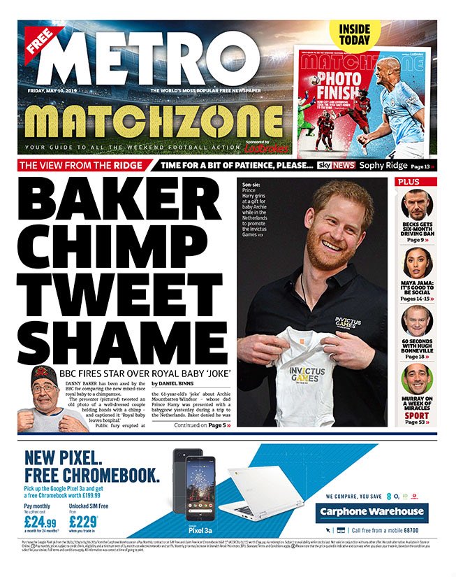 Prensa Británica de Mañana, HOY — METRO — VIERNES, 10 DE MAYO 2019