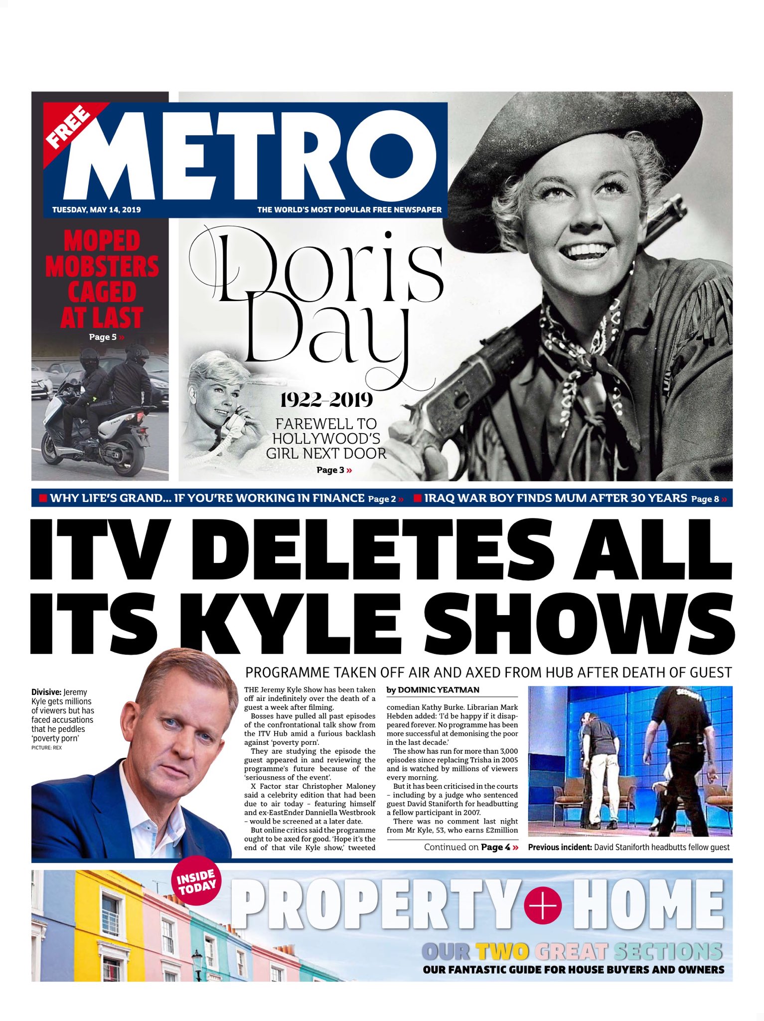Prensa Británica de Mañana, HOY — METRO — MARTES, 14 DE MAYO 2019