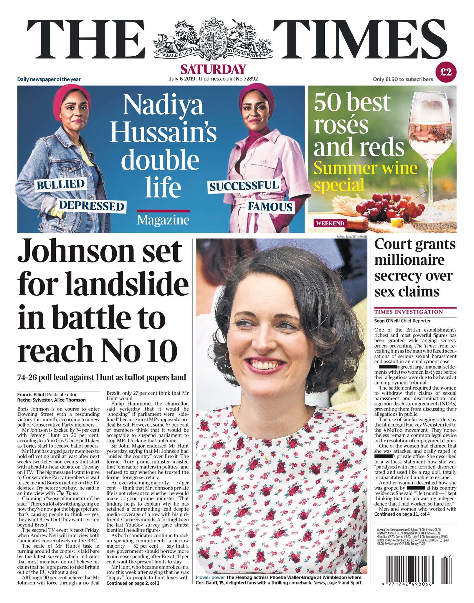 Prensa Británica de Mañana, HOY — THE TIMES — SÁBADO, 6 DE JULIO 2019