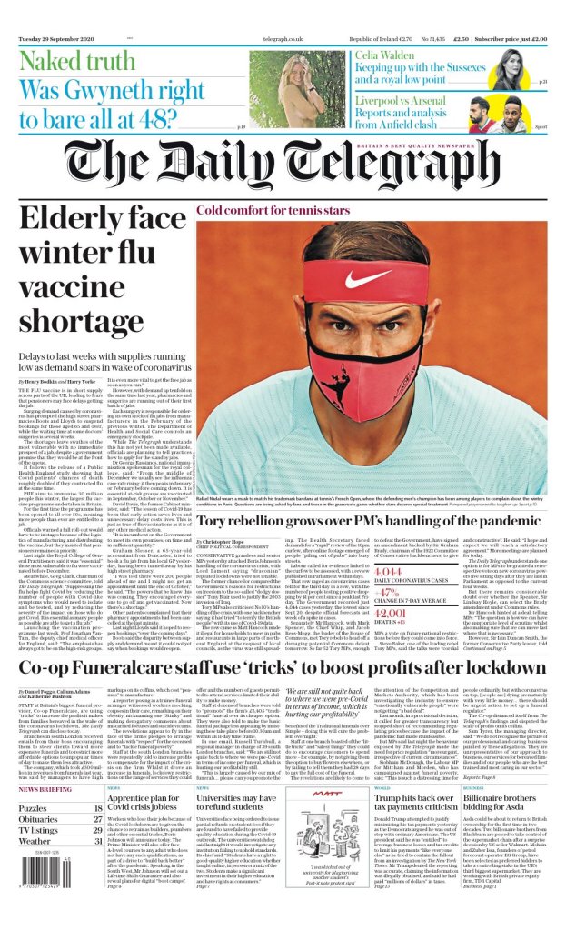 THE DAILY TELEGRAPH โ MIรRCOLES, 30 DE SEPTIEMBRE DE 2020