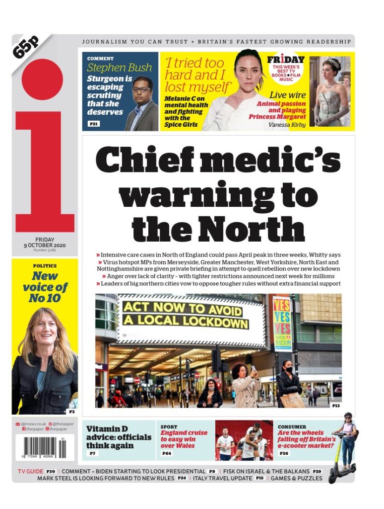 Casos de UCI en norte de Inglaterra pueden superar pico de abril en 3 semanas, dice Whitty | Parlamentarios de zonas afectadas reciben informe privado para evitar que se rebelen | Indignación por falta de claridad | Autoridades locales no acatarán medidas si no hay respaldo financiero adicional