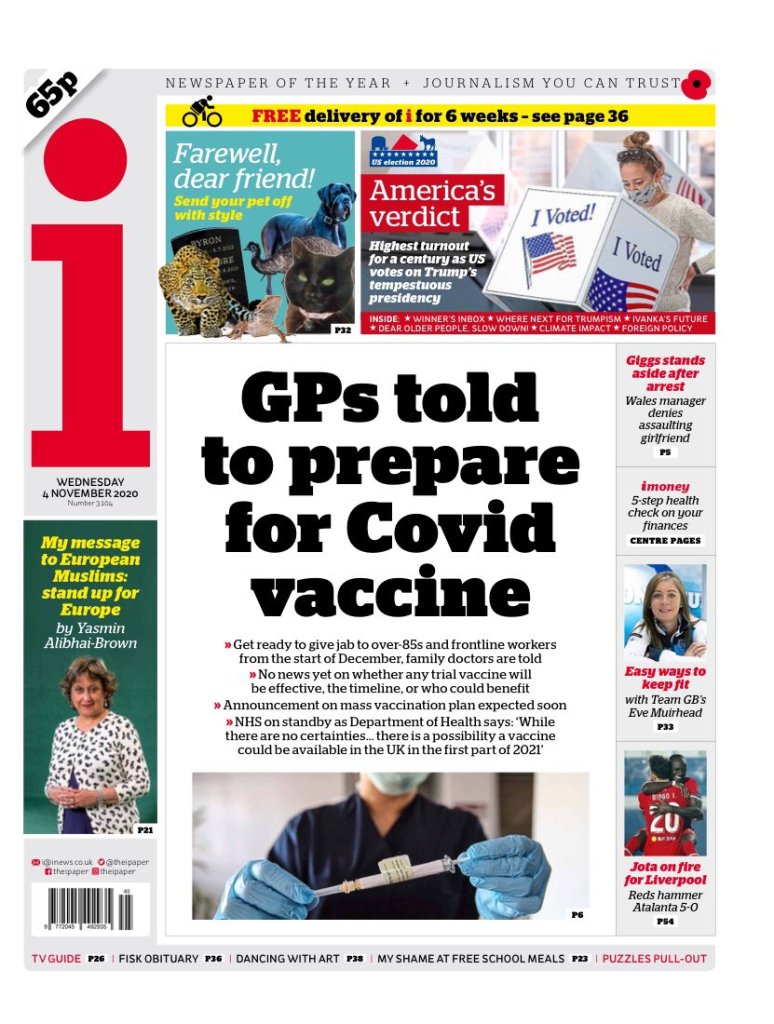 Los mรฉdicos britรกnicos han sido puestos en alerta para el lanzamiento de una vacuna, comenzando con los mayores de 85 aรฑos y los trabajadores de primera lรญnea desde principios de diciembre.