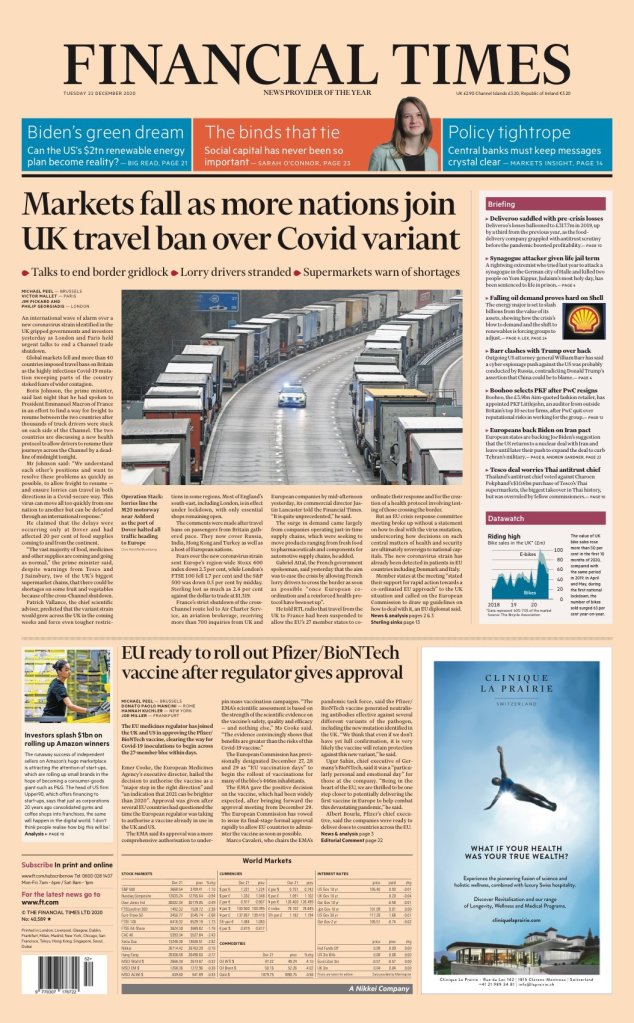 El lunes por la noche, Johnson hizo un llamamiento personal a Emmanuel Macron, el presidente francés, para que reabra la frontera francesa después de que se cerraran los puertos, en respuesta a la noticia de que una cepa de coronavirus mutante recién descubierta estÔ «fuera de control» en Londres y el sureste inglés.