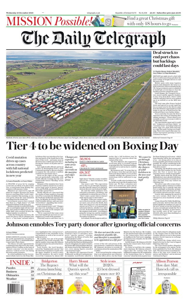 THE DAILY TELEGRAPH — MIÉRCOLES, 23 DE DICIEMBRE DE 2020