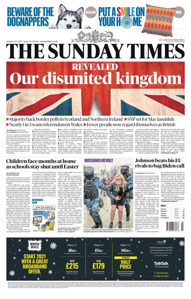 Varias encuestas encargadas por The Sunday Times revelaron que más votantes en las cuatro naciones de Reino Unido esperaban que Escocia abandone la Unión en 10 años — más de lo que creían que permanezca dentro de ella.