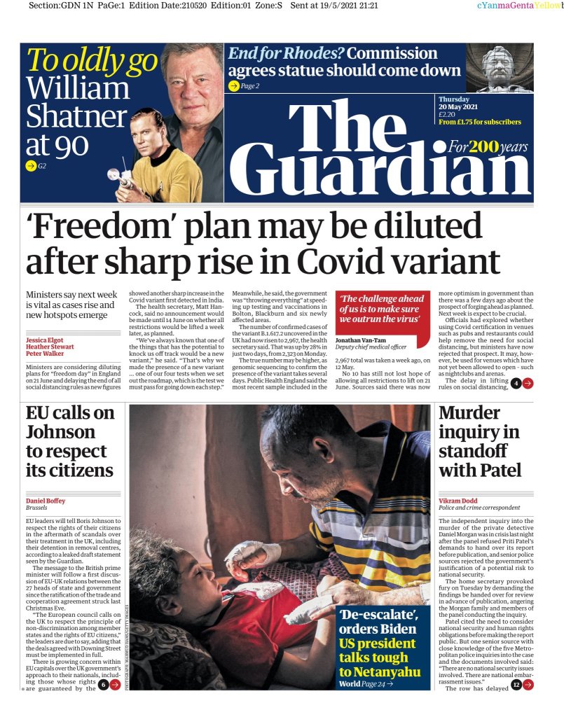 THE GUARDIAN — JUEVES, 20 DE MAYO DE 2021