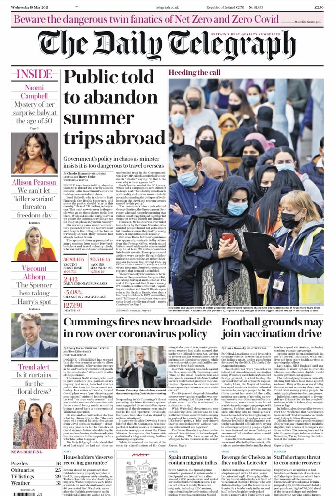 Hancock y Van-Tam también disminuyeron la probabilidad de vacaciones en el extranjero este verano, y el ministro de sanidad enfatizó que el público solo debería viajar a los 170 países de la lista ámbar por razones excepcionales. Las listas de viajes se revisarán cada tres semanas.