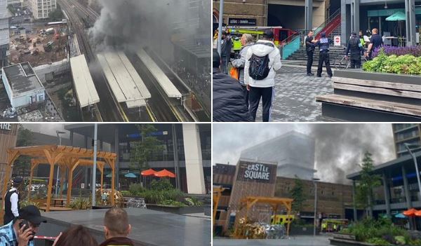 El LFB informó que tres locales comerciales de la calle Elephant Road, en los arcos bajo las líneas férreas, estaban «completamente incendiados», además de cuatro autos y una cabina telefónica.