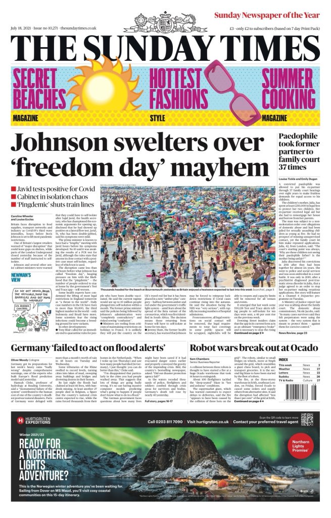 • El exsecretario de salud Jeremy Hunt advirtió que Johnson podría verse obligado a volver a imponer las restricciones de confinamiento si los casos de covid continúan aumentando hasta el otoño. Dijo que la situación que enfrenta el NHS es «muy grave», con un número cada vez mayor de ingresos hospitalarios.