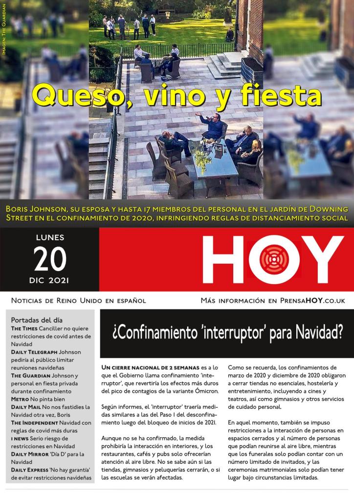 Daily Telegraph – Johnson pedirĆa al pĆŗblico limitar reuniones navideƱas