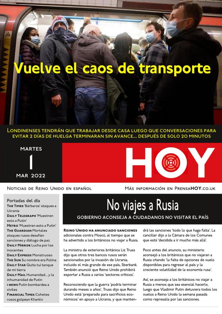 Así, se aconseja a los británicos no viajar a Rusia a menos que sea esencial hacerlo, luego que Vladimir Putin detuviera todos los vuelos a Reino Unido la semana pasada como represalia por las sanciones.