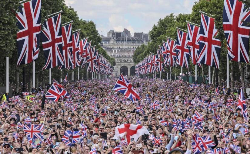 En Londres, su Jubileo de Platino se celebra con una variedad de eventos, desde un desfile militar y aéreo hasta una fiesta repleta de estrellas en el Palacio de Buckingham. Mientras tanto, los vecindarios de la capital ataviados con Union Jacks [banderas de la Unión] y banderines rojos, blancos y azules están organizando más de 3,000 fiestas callejeras y preparando festines de sándwiches de pollo y pastelería conmemorativa de la coronación.