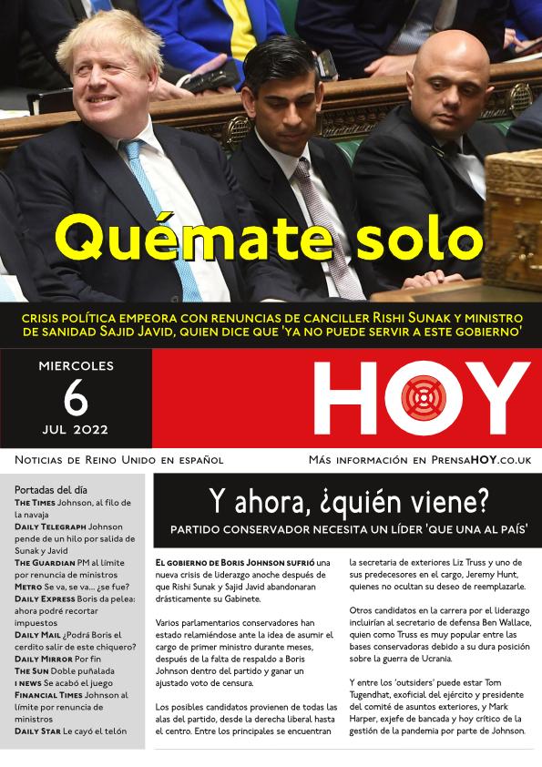 Daily Telegraph – Johnson pende de un hilo por salida de Sunak y Javid
