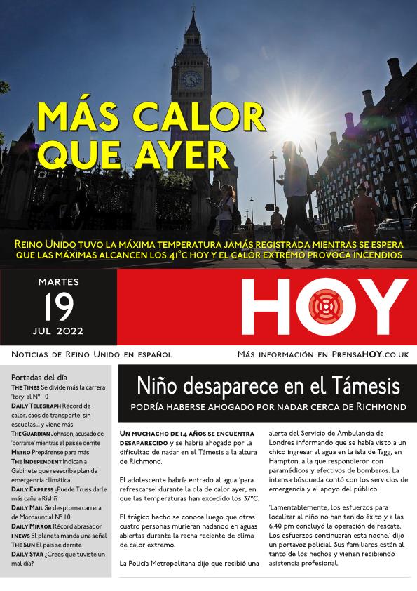 Reino Unido tuvo la máxima temperatura jamás registrada mientras se espera que las máximas alcancen los 41°c hoy y el calor extremo provoca incendios