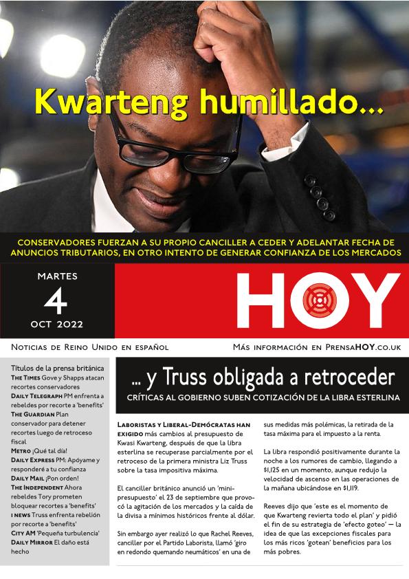Laboristas y Liberal-Demócratas han exigido más cambios al presupuesto de Kwasi Kwarteng, después de que la libra esterlina se recuperase parcialmente por el retroceso de la primera ministra Liz Truss sobre la tasa impositiva máxima.