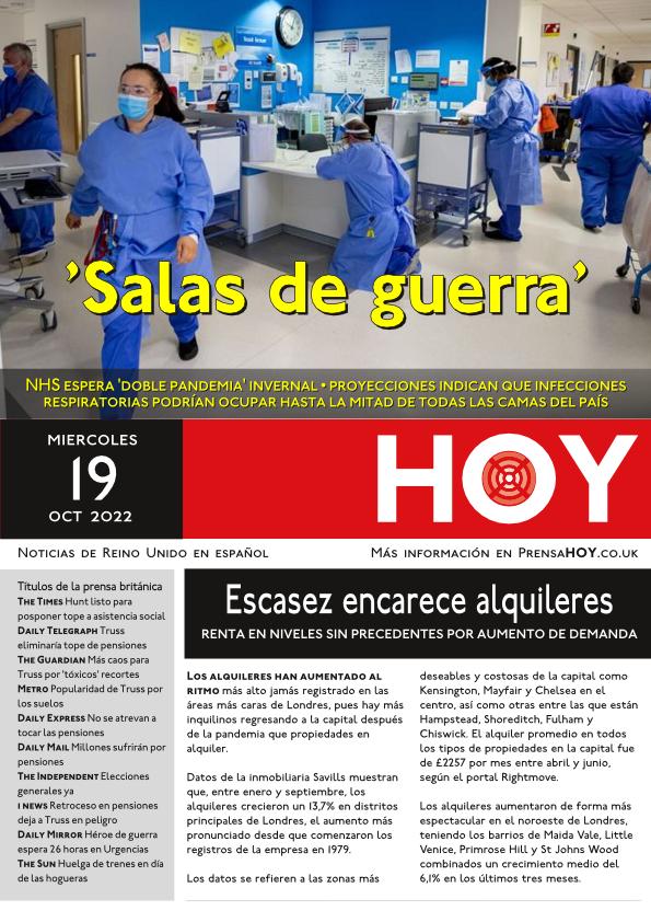 • NHS espera ‘doble pandemia’ invernal • Proyecciones indican que infecciones respiratorias podrían ocupar hasta la mitad de todas las camas del país