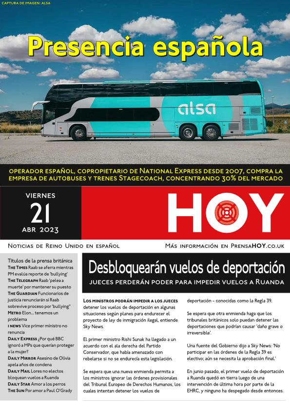 Operador español, copropietario de National Express desde 2007, compra la empresa de autobuses y trenes Stagecoach, concentrando 30% del mercado