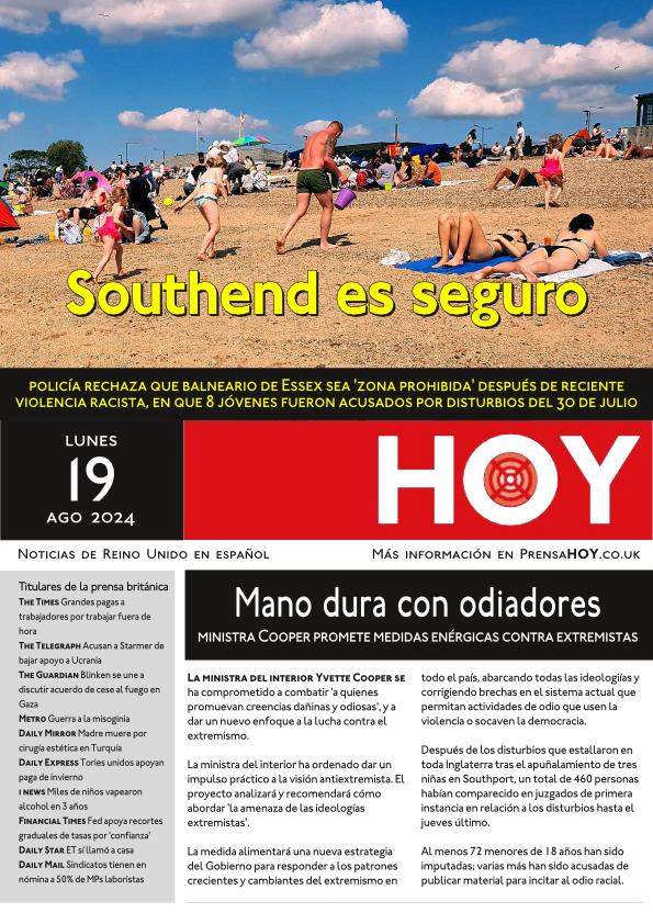La policía rechaza que balneario de Essex sea ‘zona prohibida’ después de reciente violencia racista, en que 8 jóvenes fueron acusados por disturbios del 30 de julio