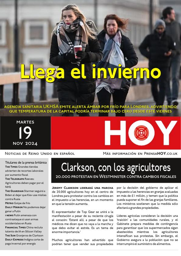 Jeremy Clarkson liderará una marcha de 20.000 agricultores hoy en el centro de Londres para protestar contra los cambios en el impuesto a las herencias, en un momento en que la tensión aumenta.