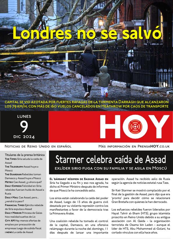 Una coalición rebelde ha tomado el control de la capital, Damasco, en una ofensiva relámpago durante la noche del domingo, 11 días después de lanzar una importante operación. Assad ha recibido asilo de Rusia según la agencia de noticias estatal rusa Tass.