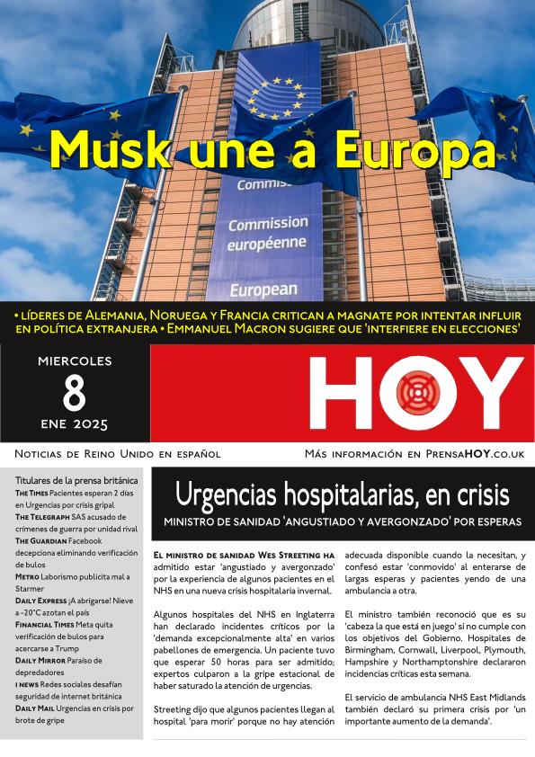 Algunos hospitales del NHS en Inglaterra han declarado incidentes críticos por la ‘demanda excepcionalmente alta’ en varios pabellones de emergencia. Un paciente tuvo que esperar 50 horas para ser admitido; expertos culparon a la gripe estacional de haber saturado la atención de urgencias.