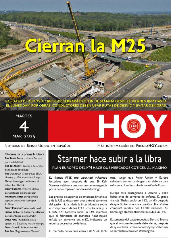 El índice FTSE 100 alcanzó máximos históricos ayer, después de que Sir Keir Starmer celebrara una cumbre de emergencia por la paz europea en Londres el domingo.