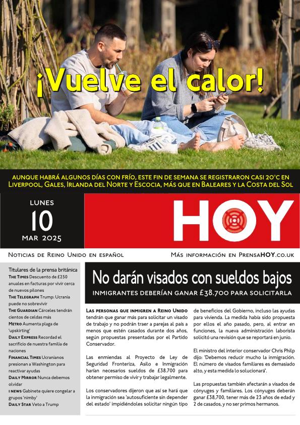 Los conservadores dijeron que así se hará que la inmigración sea ‘autosuficiente sin depender del estado’ impidiéndoles solicitar ningún tipo de beneficios del Gobierno, incluso las ayudas para vivienda. La medida había sido propuesta por ellos el año pasado, pero, al entrar en funciones, la nueva administración laborista solicitó una revisión que se reportará en junio.