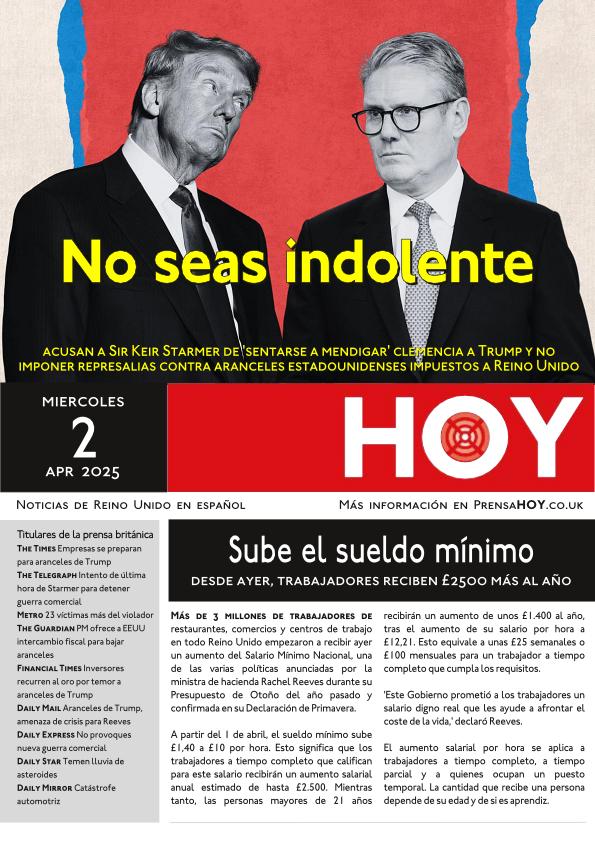 Más de 3 millones de trabajadores de restaurantes, comercios y centros de trabajo en todo Reino Unido empezaron a recibir ayer un aumento del Salario Mínimo Nacional, una de las varias políticas anunciadas por la ministra de hacienda Rachel Reeves durante su Presupuesto de Otoño del año pasado y confirmada en su Declaración de Primavera.
