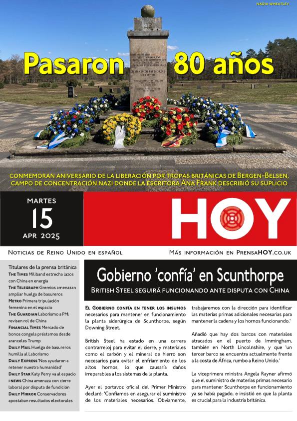 Conmemoran aniversario de la liberación por tropas británicas de Bergen-Belsen, campo de concentración nazi donde la escritora Ana Frank describió su suplicio