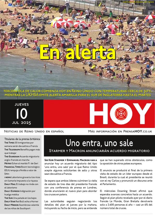 Tercera ola de calor comienza hoy en Reino Unido con temperaturas cerca de 30°C, mientras la UKHSA emite alerta amarilla para el sur de Inglaterra hasta el martes