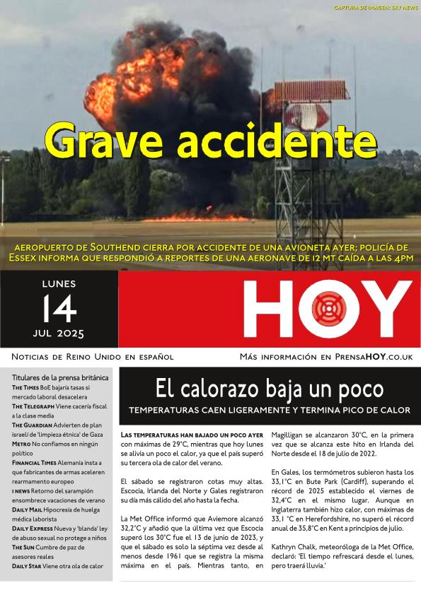 Aeropuerto de Southend cierra por accidente de una avioneta ayer; policía de Essex informa que respondió a reportes de una aeronave de 12 mt caída a las 4pm