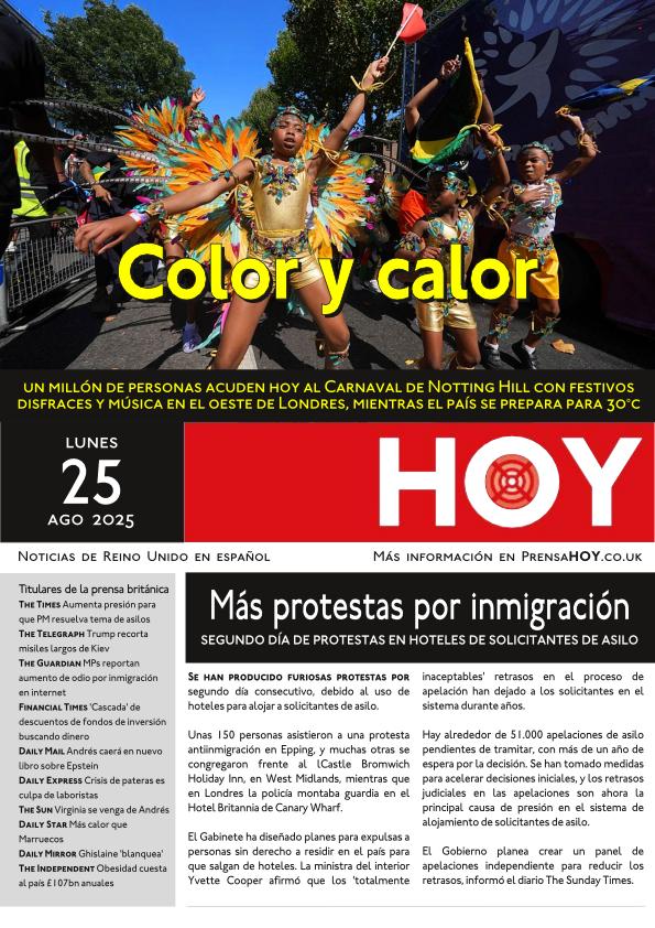 Un millón de personas acuden hoy al Carnaval de Notting Hill con festivos disfraces y música en el oeste de Londres, mientras el país se prepara para temperaturas de hasta 30°C