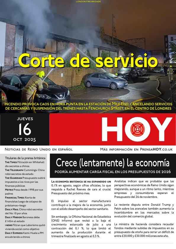 La economía británica se ha expandido un 0,1% en agosto, según cifras oficiales, lo que respalda a Rachel Reeves de cara al crucial Presupuesto del próximo mes.