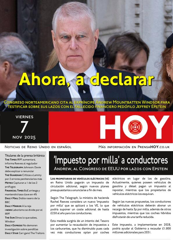 Congreso norteamericano cita al expríncipe Andrew Mountbatten Windsor para testificar sobre sus lazos con el fallecido financiero pedófilo Jeffrey Epstein