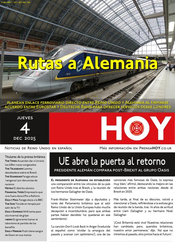 Planean enlace ferroviario directo entre Reino Unido y Alemania al firmarse acuerdo entre Eurostar y Deutsche Bahn para ofrecer servicios desde Londres