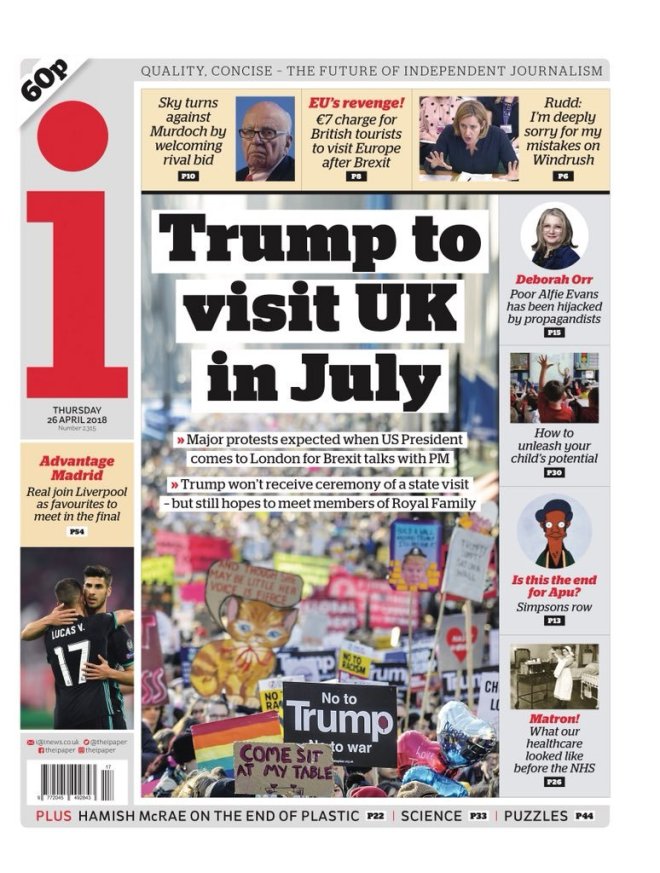 Donald Trump visitará Reino Unido en julio: se esperan protestas masivas cuando el presidente norteamericano venga a Londres para hablar del Brexit con la primera ministra. No se le ofrecerá el ceremonial de visita de estado pero sí espera encontrarse con miembros de la familia real