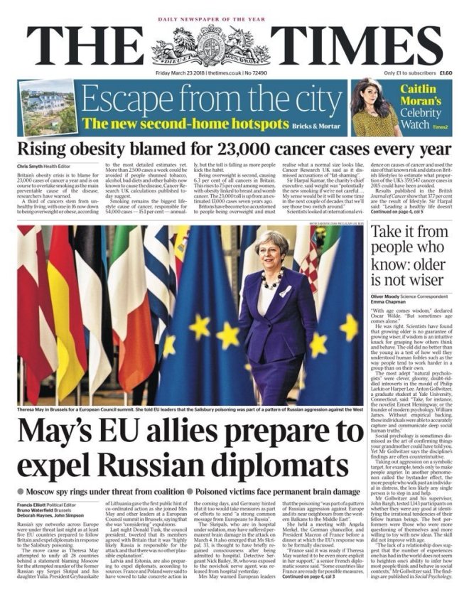 Países de toda Europa se preparan para expulsar a diplomáticos rusos debido a que las consecuencias del envenenamiento de un ex doble agente en Salisbury van alcanzando niveles sin precedentes.