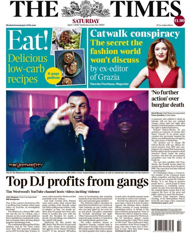 Uno de los DJs más conocidos del país obtiene beneficios por colgar vídeos violentos de pandillas en YouTube, según una investigación: Tim Westwood (foto), otrora estrella radial de BBC e hijo de un obispo, lleva un canal en la plataforma audiovisual identificado en una base de datos confidencial de la policía metropolitana (Met) como uno de los medios donde se muestra a presuntos gánsters amenazando a sus rivales e incitando a la violencia