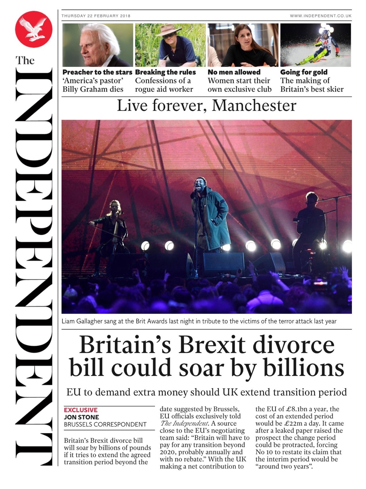 MÔs tarde, al final de su discurso, volvió a mencionar a Oasis, refiriéndose a la exitosa gira de reunión de la banda, tras 16 años de acritud entre Liam Gallagher y su hermano Noel Gallagher.