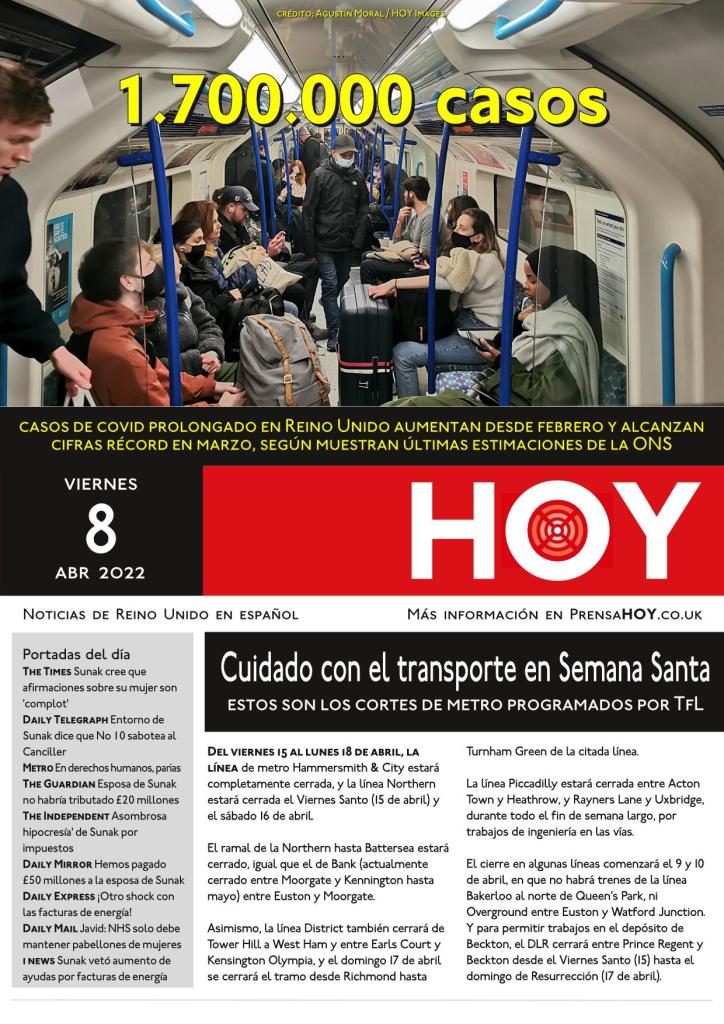 Del viernes 15 al lunes 18 de abril, la línea de metro Hammersmith & City estará completamente cerrada, y la línea Northern estará cerrada el Viernes Santo (15 de abril) y el sábado 16 de abril.