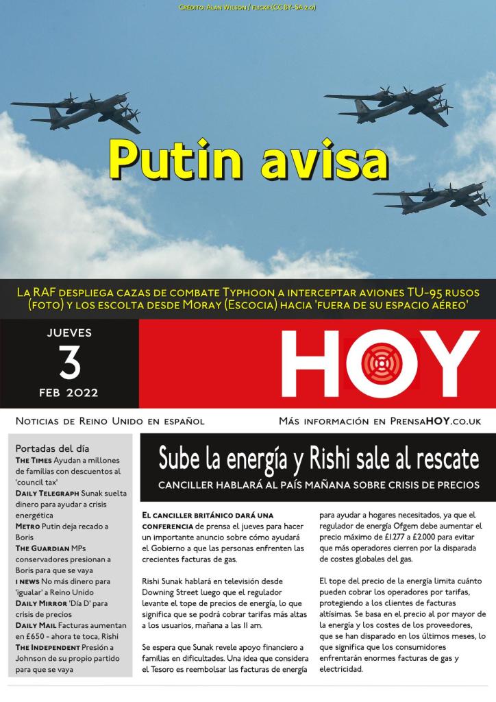 Daily Express – PM advierte a Putin por Ucrania y RAF retira aviones rusos