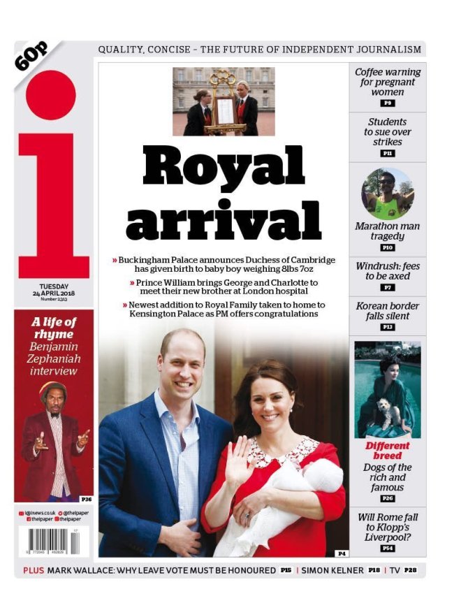 Presentación real: el palacio de Buckingham anuncia que la duquesa de Cambridge ha dado a luz a un niño de 3 kilos 827 gramos, mientras el príncipe Guillermo ha traído a George y Charlotte para que conozcan a su nuevo hermano en el hospital St Mary’s (Londres). La nueva adición a la familia real ha sido trasladado a su domicilio en el palacio de Kensington, mientras la primera ministra Theresa May les ha presentado su felicitación.